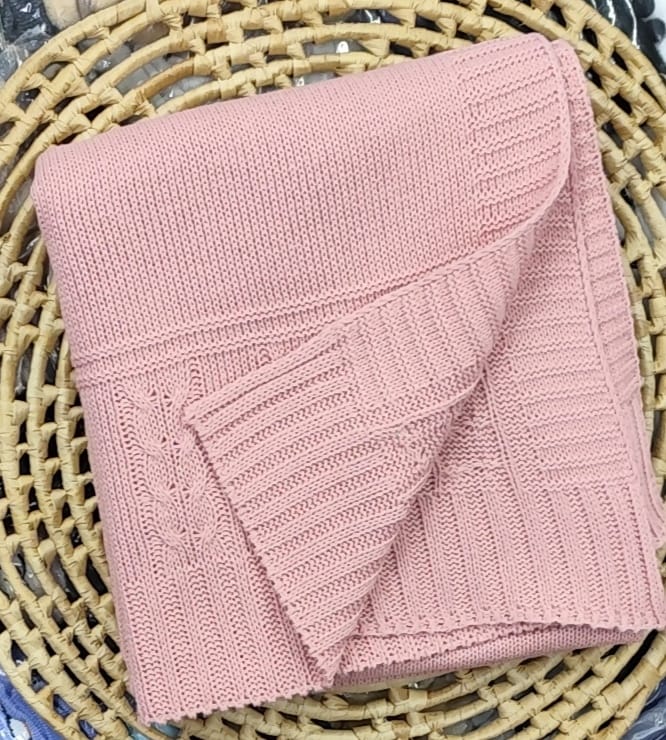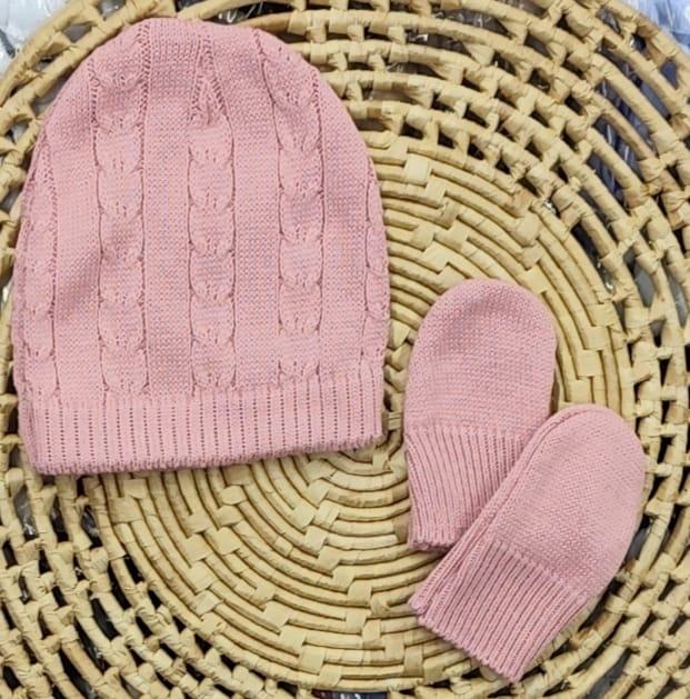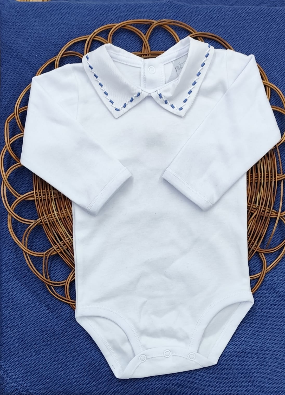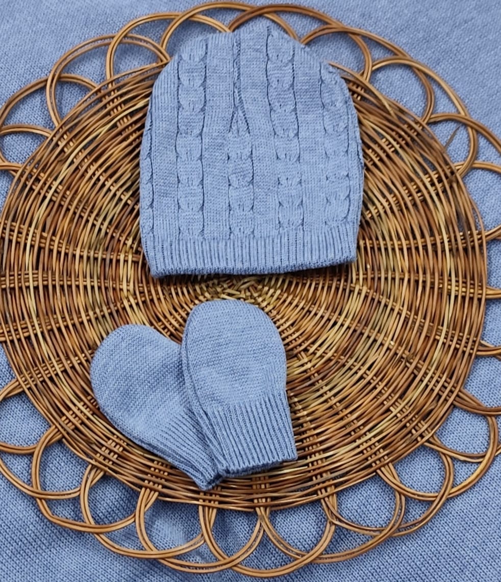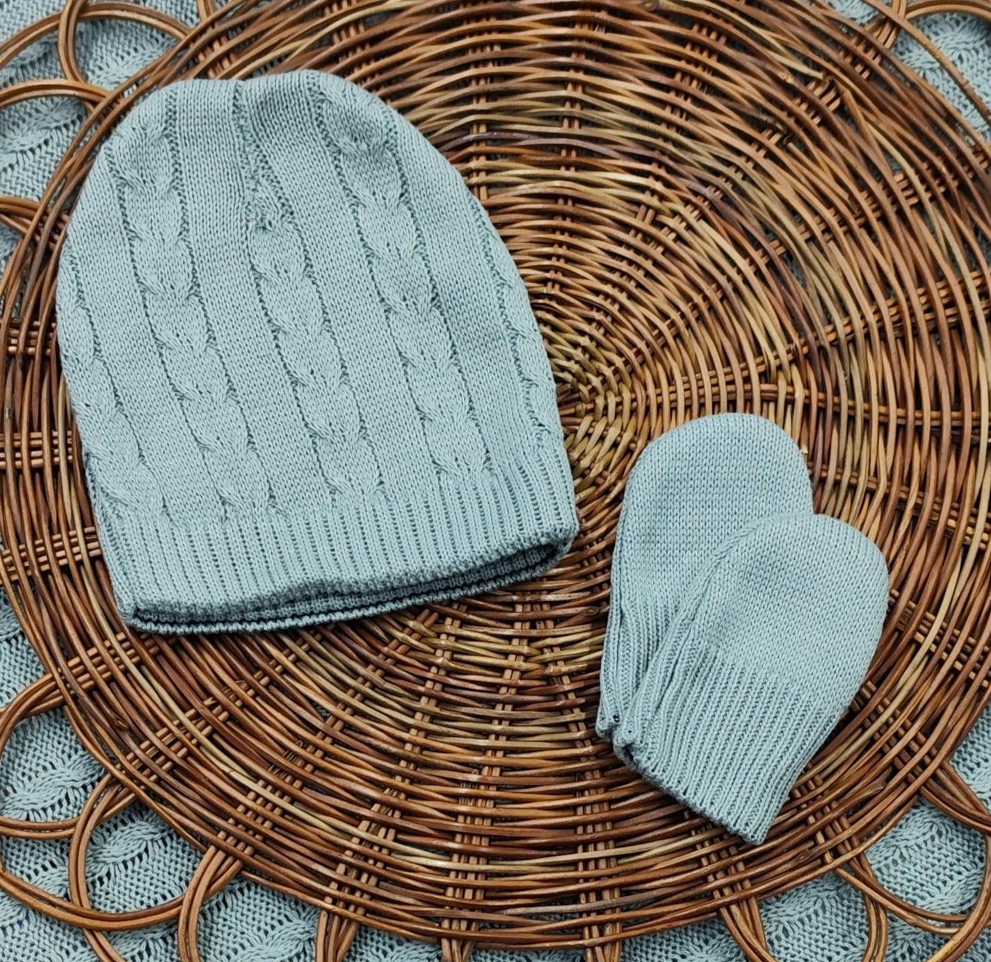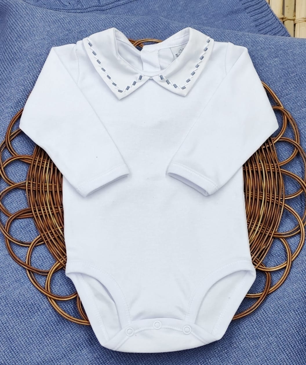 Kit Saída de Maternidade em Tricot – macacão, body com gola bordada, touca, luvas e manta.